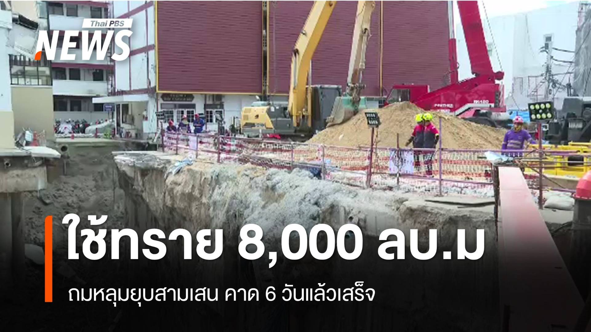 9月30日,泰国大众捷运管理局副局长透露,塌陷区域填充工作正在持续进行。施工队在使用沙子填补时发现,坑底有两个洞,一个大小与供水系统被拆除时的大小相近,另一个在警察局一侧的墙边,他们怀疑是混凝土收缩出现的裂缝。为解决该问题,浇筑混凝土后,可能需要1-2个小时才能硬化,之后才能继续进行填砂工作。
