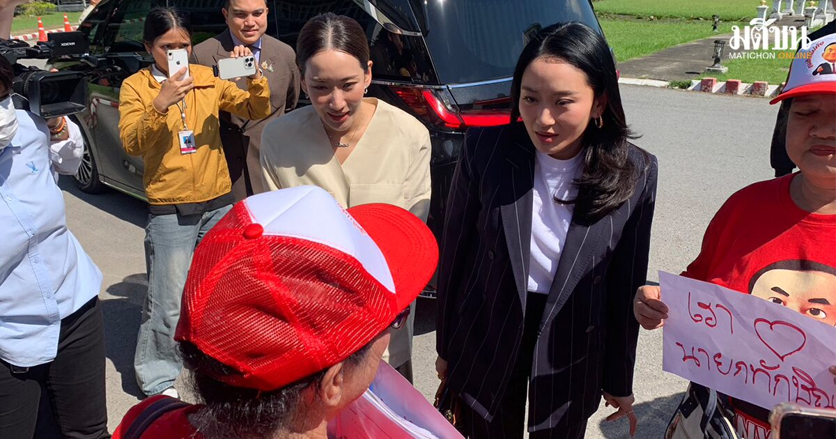 探视前,佩通坦与萍通塔还同等待在监狱前的红衫军成员亲切合影,部分红衫军成员还手持“钦那瓦加油”、“只要为泰党”、“我们爱他信”等字样的白纸,声援他信家族。结束探监后,佩通坦接受了记者采访,关于他信病情的问题,佩通坦表示父亲的情况正在好转,只是颈骨有些问题,但他看起来精神好多了,正在逐步康复中。但因为他信的性格不是一个能安静修养的人,因此她们上次探视时就已经为父亲准备了一本佛经,并转交给他。