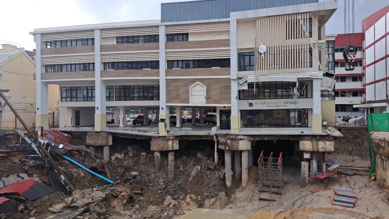 据悉,塌陷路面目前已填埋约3000立方米的沙子,并尝试在破损的桩基上添加更多桩基。然而,部分桩基出现裂缝和塌方。警察局的第三根柱子也已受损或损坏,促使当局重新评估情况。今天上午,技术团队评估认为,如果现在不完成拆除工作,修复土壤将面临障碍,且修复过程中建筑物存在倒塌风险。警方对此没有异议,MRTA和承包商将承担所有费用,总计超过4000万泰铢。至于道路通车日期原定于10月9日,现将无限期延长,具体时间将根据审核结果而定。