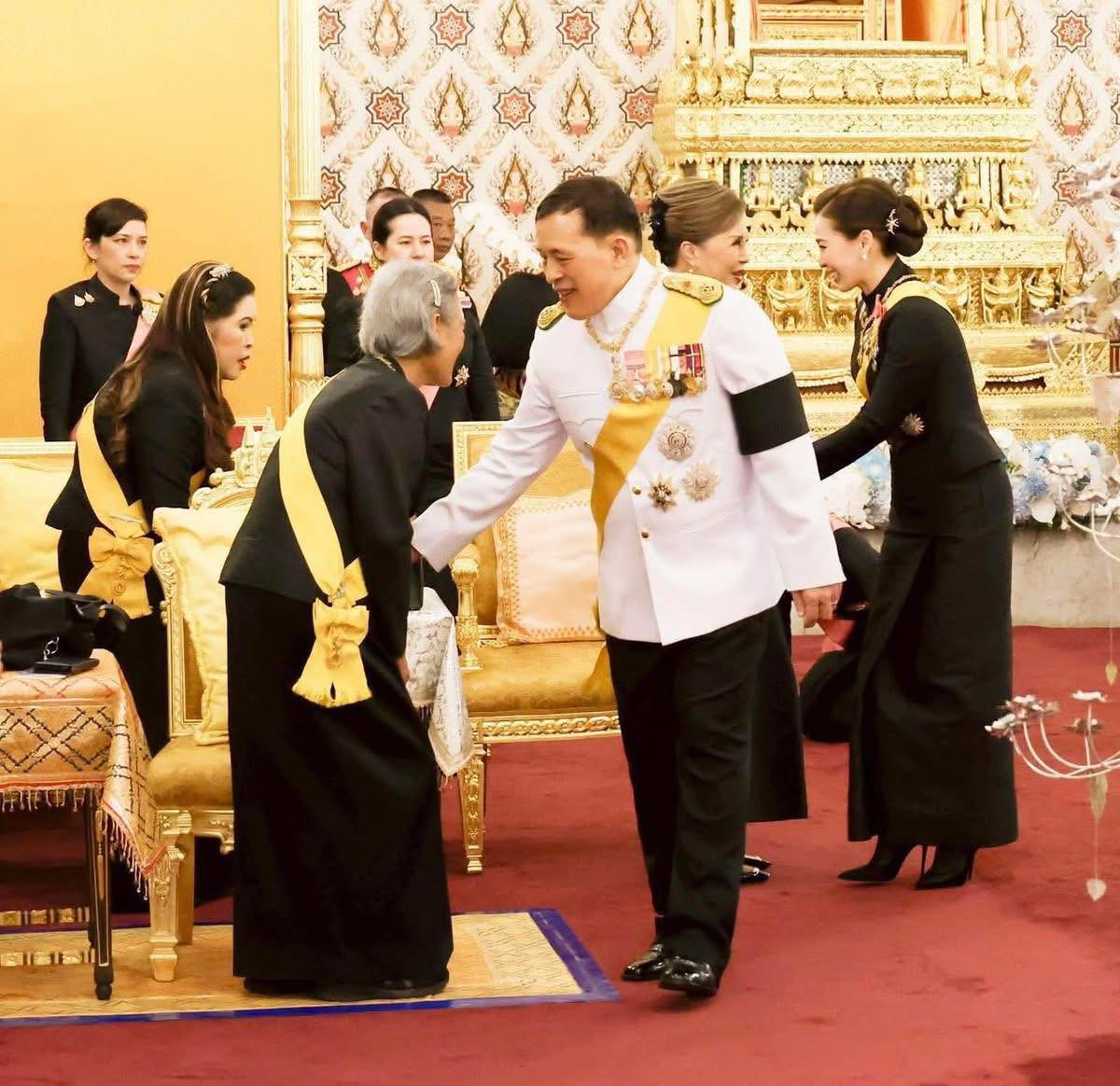 国王驾临现场时,乌汶叻、诗琳通及朱拉蓬接驾,国王王后相继与三位公主寒暄拥抱,进而主持仪式。