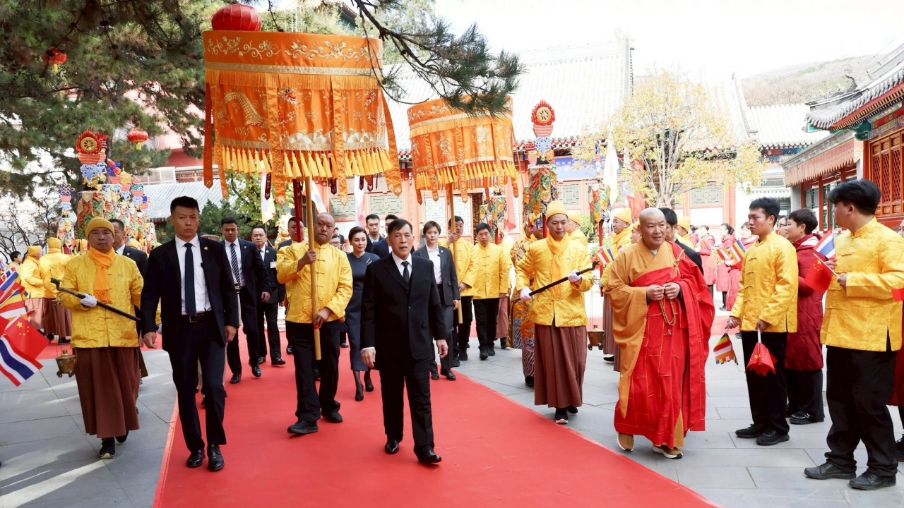11月15日上午,泰国十世王玛哈·哇集拉隆功国王偕素提达王后前往北京拥有千年历史的古寺—灵光寺参拜。当天,中国佛教协会会长、灵光寺住持以及中华人民共和国国家宗教事务办公室高级代表和中国佛教协会秘书长均在场迎接。