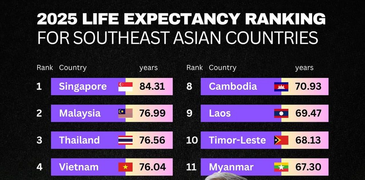同时,印尼(72.67岁)、菲律宾(71.92岁)、柬埔寨(70.93岁)和老挝(69.47岁)等国的预期寿命也稳步上升,反映医疗下沉与城市发展的正面成果。即便是位居末段的东帝汶与缅甸,也正努力提升医疗基础设施与城市健康条件。