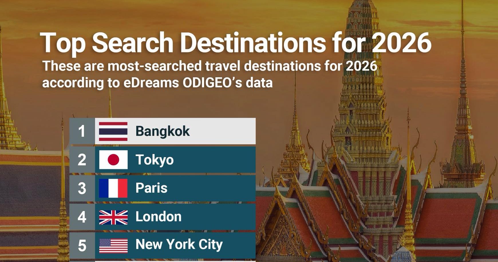 据泰媒报道,线上旅游平台 eDreams ODIGEO 最新数据显示,全球旅客已经开始规划 2026 年的行程。根据搜索量统计,明年最受关注的前十热门目的地如下: