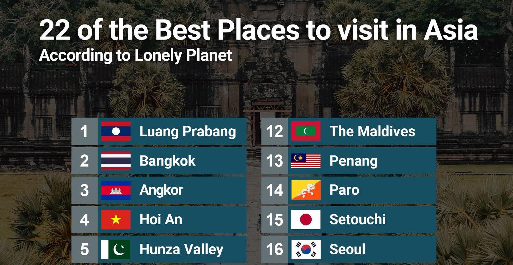 知名旅游指南《孤独星球》(Lonely Planet)公布亚洲最佳旅游目的地榜单,共列出22个以文化体验、自然景观与旅行魅力著称的城市与地区。其中泰国首都曼谷位居第二,显示泰国仍是亚洲最具吸引力的旅游国家之一。