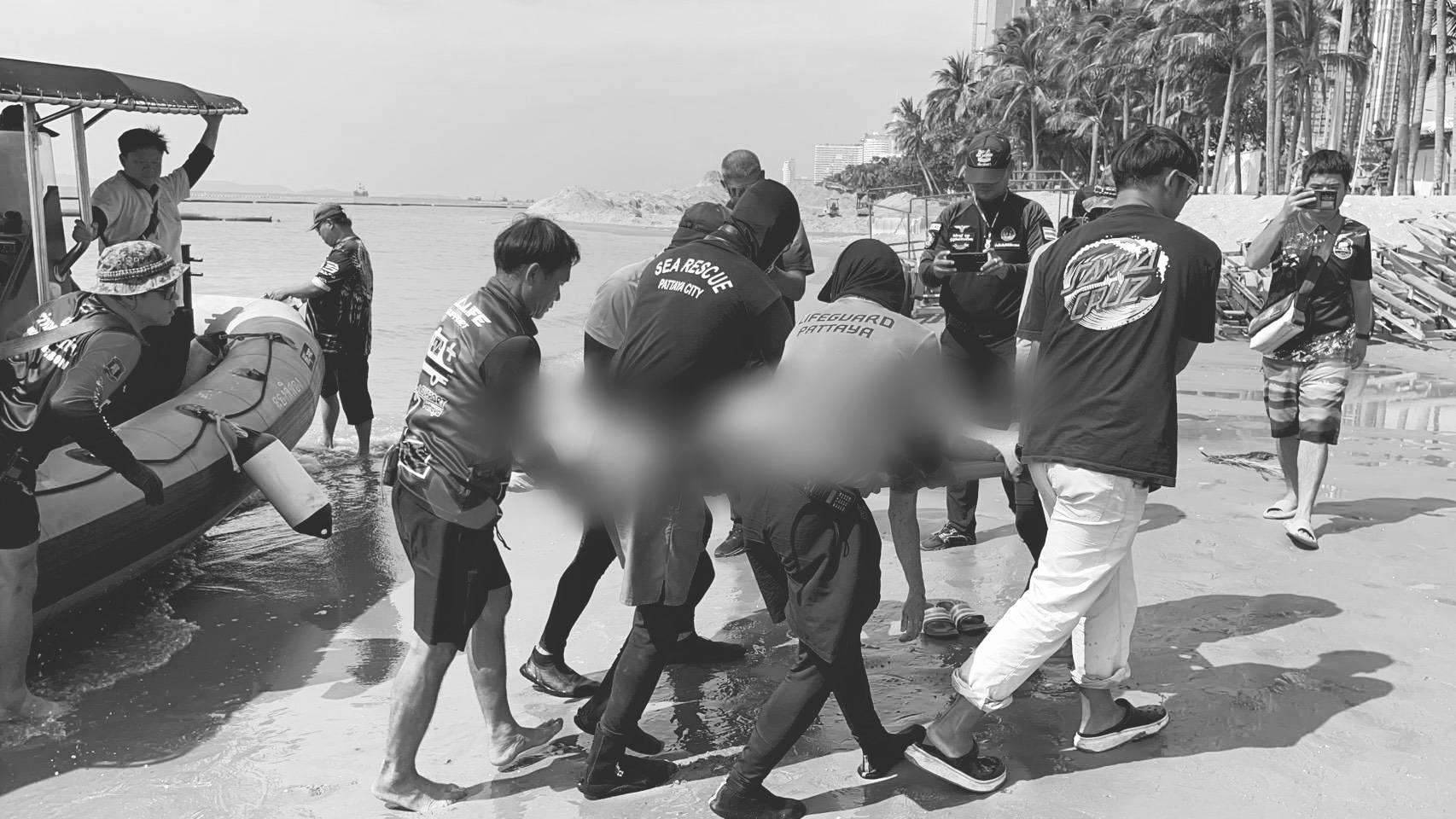 11月26日,事发两天后,来自是拉差水警、格兰岛海上救援队及芭堤雅救援队的联合搜救力量继续在附近海域扩大搜索。上午11点,搜救人员在距格兰岛约6海里、靠近朗桂恩岛附近的海面上发现一具俯浮的男性遗体,仅身穿黑色短裤,经确认正是失踪者。遗体随后被水警船送往中天海滩A码头上岸。
