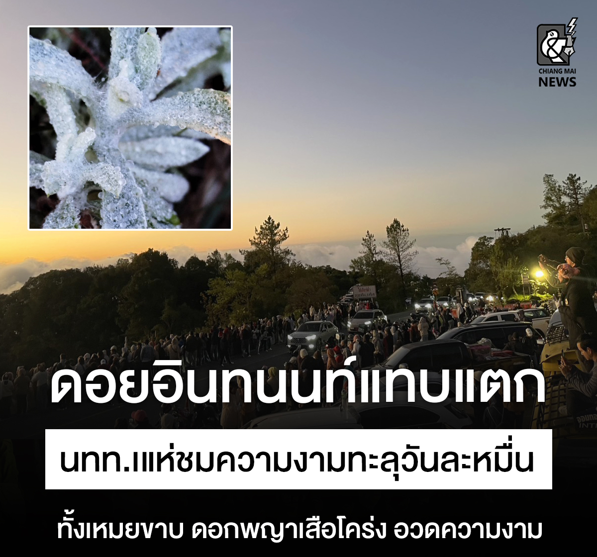 据清迈媒体报道,受长假出游热潮带动,清迈茵他侬山国家公园(Doi Inthanon)游客量大幅攀升,日均接待量突破万人。12月29日清晨,茵他侬山山顶最低气温降至3摄氏度,寒意持续,“霜花(霜冻)”再度出现,吸引大量游客清晨登顶观赏。